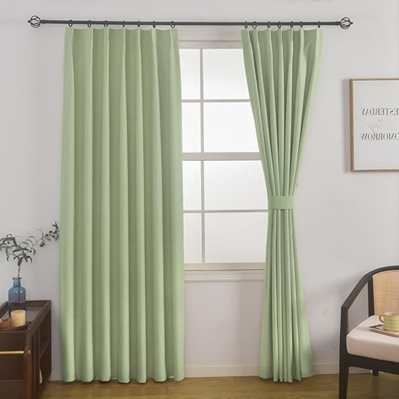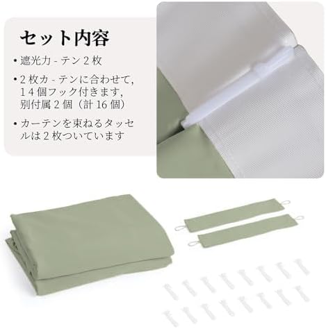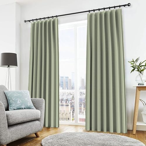 PANDA INTERIOR カーテン2枚セット 防音カーテン 遮光カーテン 断熱カーテン 既成 カーテン省エネ, 厚地, スタイリッシュ, 幅100cm, 調節可能フック付き, 洗濯可, 寝室用 (グリーン, 幅100cm×丈178cm-2枚) a