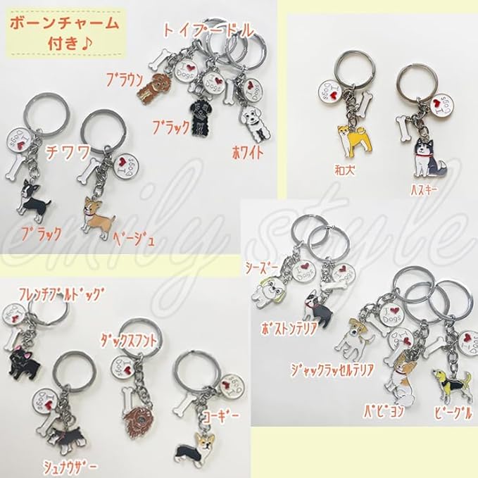 [emilystyle] ドッグキーホルダー 鈴付き ボーンチャーム付き 骨 キーリング チャーム お出かけ 鍵 アクセサリー 犬 ドッグ バッグ エミリースタイル a