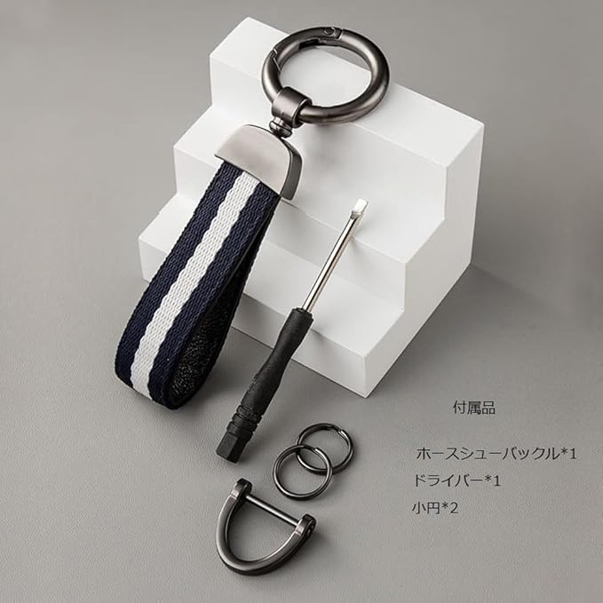 [Long River Sunset] 車のキーリング、 キーホルダー ,外層ズック内層皮革 ,馬蹄形のリング、金属製のアクセサリー レトロ、スタイリッシュ、耐久性 a