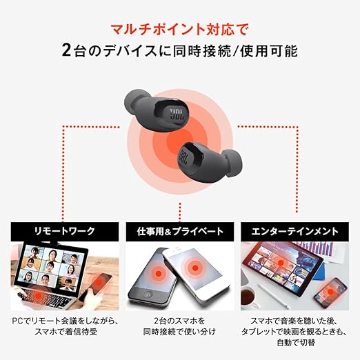 2台のBluetoothデバイスに同時に接続可能(マルチポイント)。