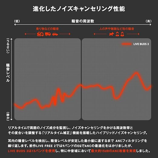 ブランド史上最高クラスの進化したハイブリッドノイズキャンセリング機能(リアルタイム補正機能付き)