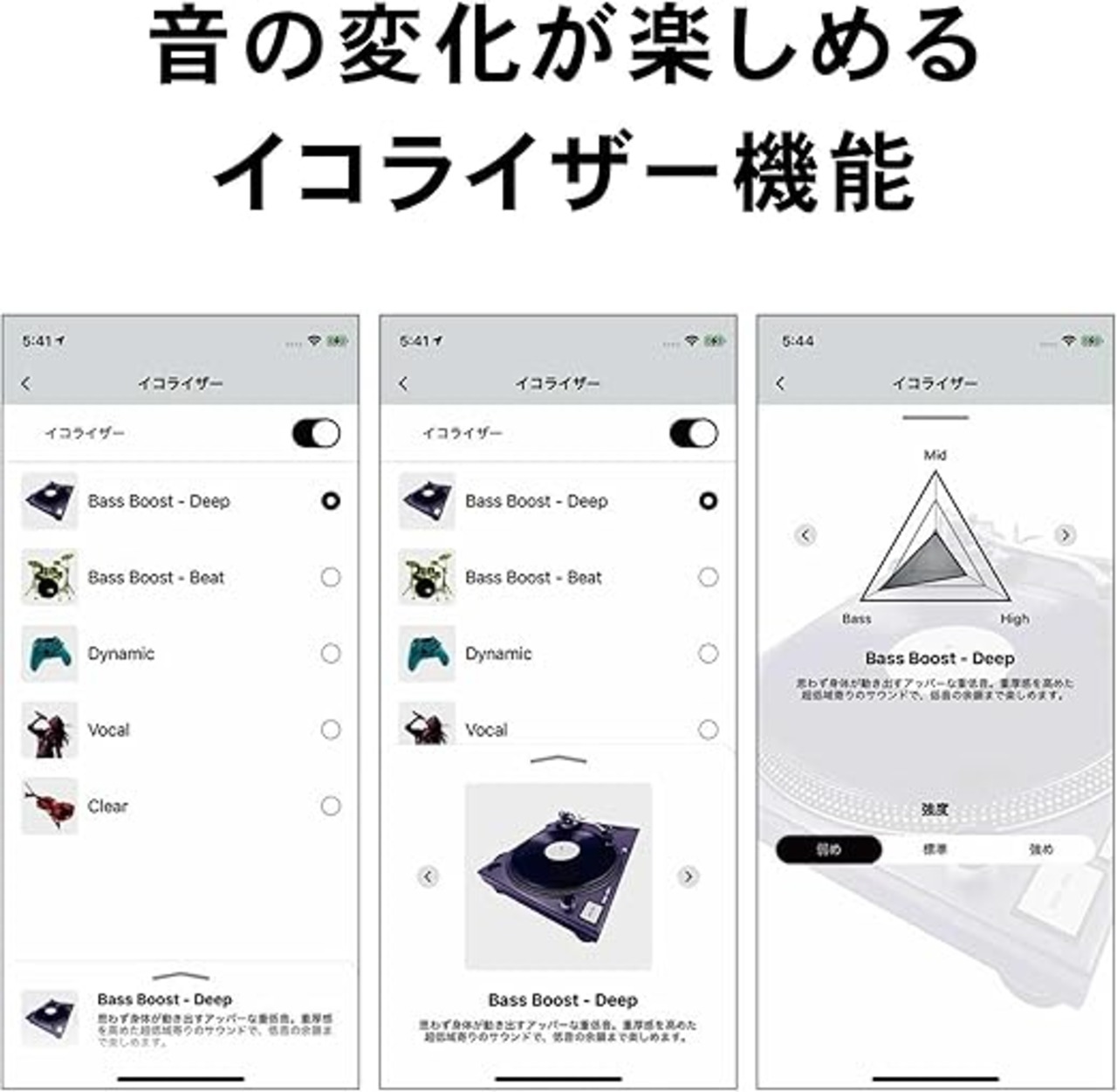 【ワンタップで設定が呼び出せる専用プリセットイコライザーを採用】専用アプリ「Connect」を使用して、さらなる重低音の世