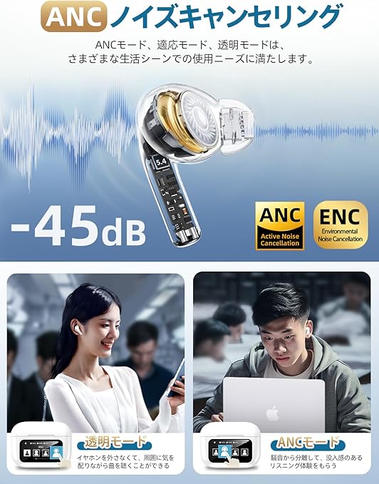 ワイヤレスイヤホン革新の狼煙を上げるAIFENGは、いま登場!スマートタッチディスプレイを搭載した【スマートANC bluetooth イヤホン】が日本で発売された!独自開発のノイズキャンセリングチップにより、ブルートゥース イヤホンのノイズ低減深度は36dBと高く、適切なサイズのイヤーピースを使用すれば、ANCイヤホンのノイズ低減深度は45dBにまで跳ね上がます!アクティブに有害なノイズをフィルターすると同時に聴覚を保護するので、リズムの世界に没頭させてくれます。【画一的なノイズキャンセリング