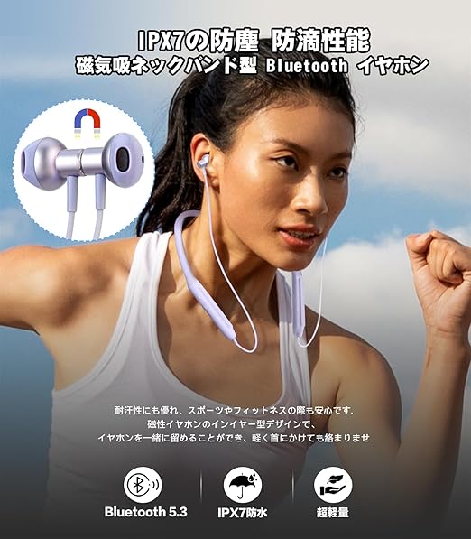 【2024革新 ネックバンド型 イヤホン・Bluetooth 5.3】Bluetooth イヤホン ネックバンド型 HQP 首掛け ワイヤレスイヤホン ブルートゥース CVC8.0ノイズキャンセリング Type-C急速充電 Hi-Fi音質 イヤホン Bluetooth ネックバンド 自動ペアリング ハンズフリー通話 IPX7防水 超軽量 技適認証済 iPhone/Android対応 (パープル) a