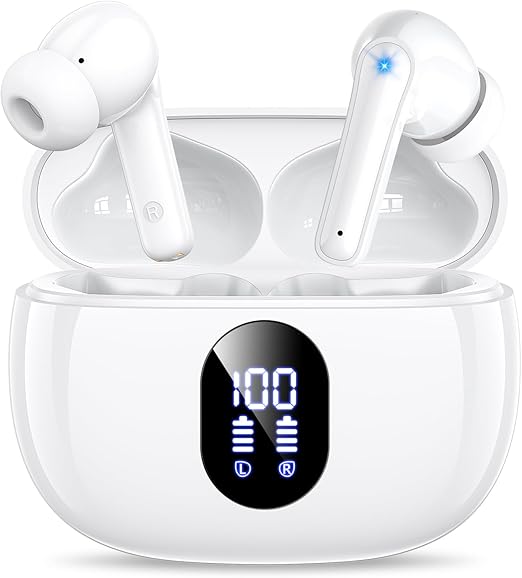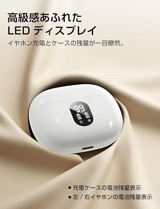 イヤホン bluetooth ワイヤレスイヤホン 48時間の再生時間 重低音 LEDディスプレイ表示 小型/軽量 IPX7防水 ブルートゥース 接続瞬時 Hi-Fi ブルートゥース イヤホン Type-C 急速充電 ぶるーとぅーすイヤホン iPhone/Android/Pad適用 スポーツ/通勤/通学/WEB会議 (ホワイト) a