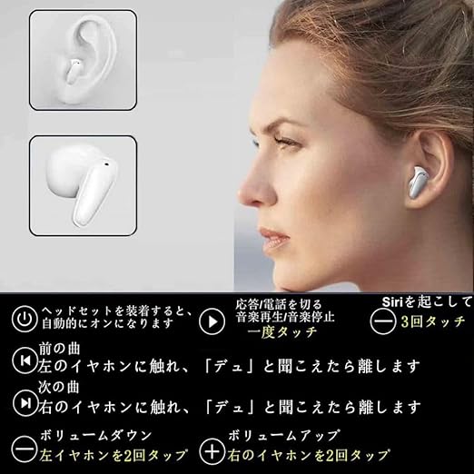 ワイヤレスイヤホン イヤホン Bluetoothイヤホン 2025最新ブルートゥースイヤホン EDR+Bluetooth5.3搭載 カルナ型 自動ペアリング 接続瞬時 ハンズフリー通話 マイク内蔵 タッチ操作 コンパクト/テレワーク/通勤/通学/WEB会議 (01white) a