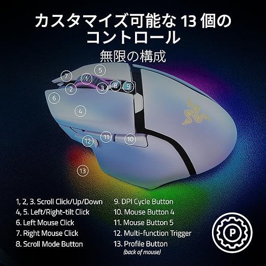 Razer レイザー Basilisk V3 Pro 35K (White Edition)ワイヤレス ゲーミングマウス HyperSpeed Wireless Bluetooth 有線 Focus Pro 35K オプティカルセンサー 35,000DPI 第 3 世代オプティカルマウススイッチ 4方向 HyperScroll チルトホイール 11ボタン RGB 【日本正規代理店保証品】 a