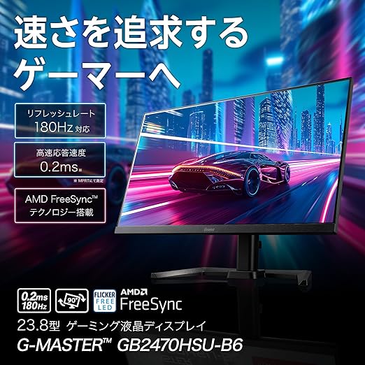 G-MASTER ゲーミングモニター ディスプレイ 23.8インチ 180Hz 0.2ms IPS方式 フルHD 高さ調整 縦回転 HDMI DisplayPort USBハブ 全ケーブル付 3年保証 国内サポート iiyama GB2470HSU-B6 a