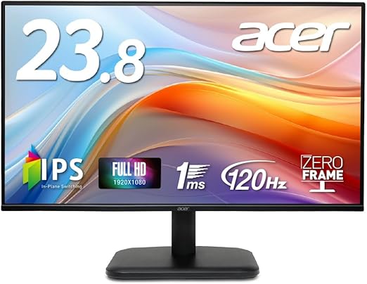 Acer モニター 23.8インチ フルHD 非光沢 IPS 120Hz 1ms(VRB) sRGB 99% AdaptiveSync HDMI 1.4 ミニD-Sub 15ピン スピーカー・ヘッドフォン端子 音声入力端子 VESAマウント対応 ゼロフレームデザイン EK241YGbmix a