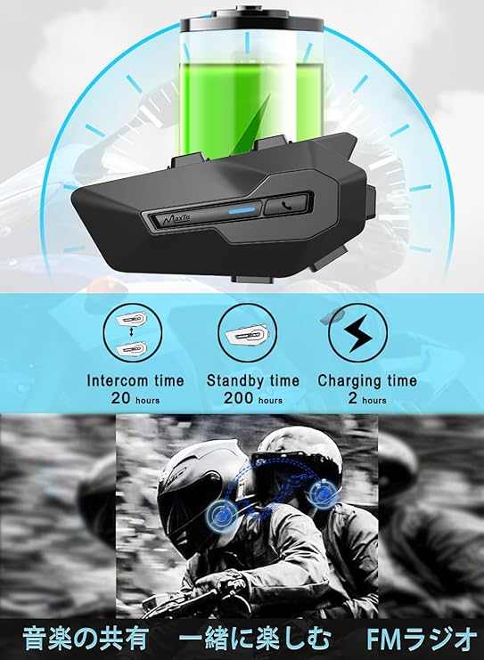 Maxto X2 バイク インカム, Bluetooth5.0 用通信機器 2人同時通話 通信距離1000m HI-FI音質 FMラジオ/Siri音声/日本語音声案内/着信自動応答 イヤル ソフトとハードマイク同梱 ソロツーリング バイク用通信機器 異なるインカムとの接続可能 IPX6防水 付属品完備 日本語説明書付き TELEC技術基準適合証明付き(?台) a