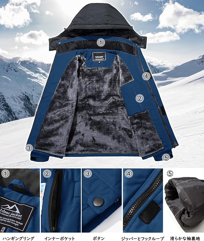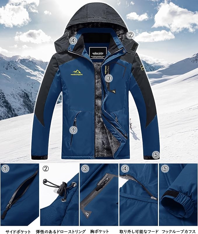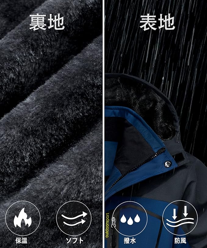 [TACVASEN] アウトドアジャケット メンズ 多機能 マウンテンパーカー 防風 防寒 登山服 裏ボア 保温 撥水性 ウインドブレーカー 登山ジャケット フリース 裏起毛 フード付 取り外し可能 c