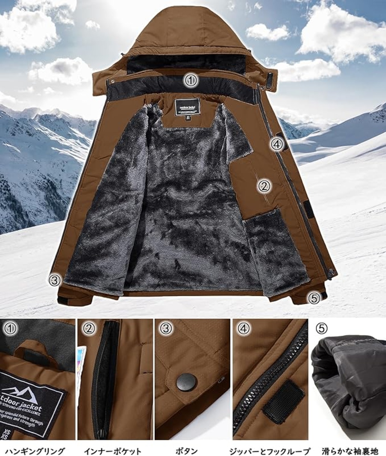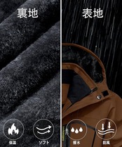 [TACVASEN] アウトドアジャケット メンズ 多機能 マウンテンパーカー 防風 防寒 登山服 裏ボア 保温 撥水性 ウインドブレーカー 登山ジャケット フリース 裏起毛 フード付 取り外し可能 f