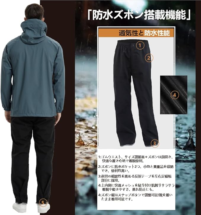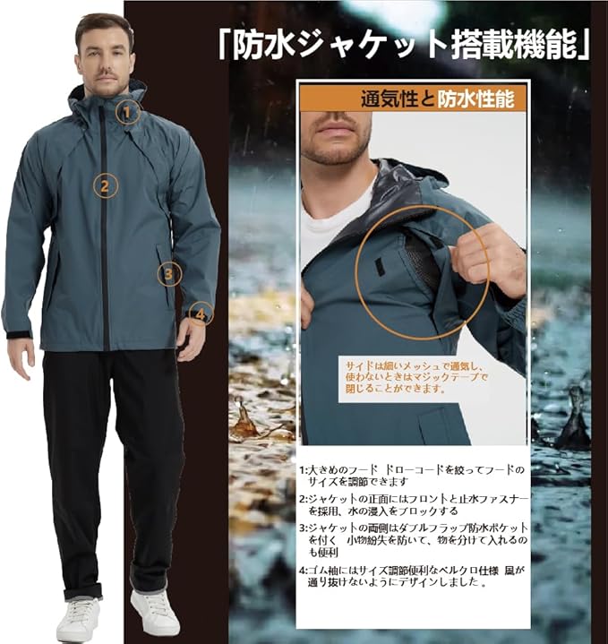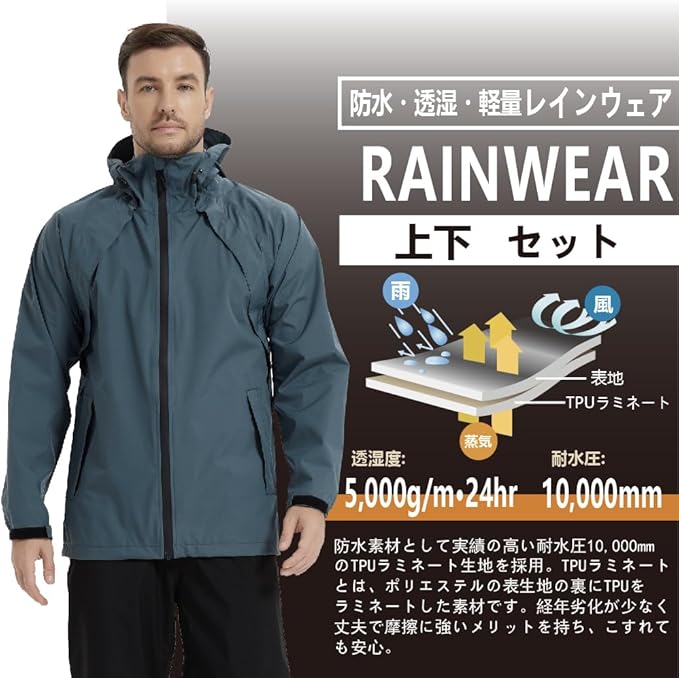 [TopKylin] レインスーツ ゴルフ レインウェア メンズ レインコート 上下セット カッパ 通気 透湿 防水 防風 アウトドア 登山 釣り 自転車 ウィンドブレーカー 通勤 通学 a