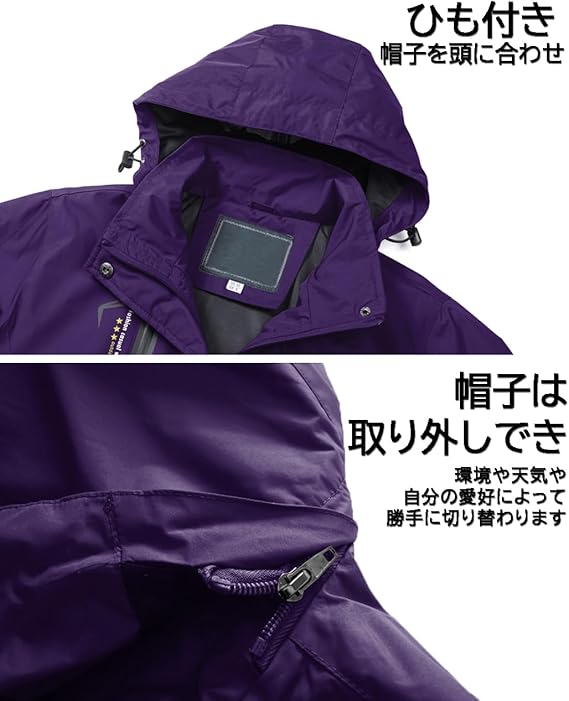 [TACVASEN] マウンテンパーカー 撥水 レディース 登山ジャケット 防風 軽量コート 通気性 ブルゾン フード付 取り外し可能 春秋冬 a