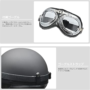 リード工業(LEAD) バイクヘルメット ハーフ CR-750 ビンテージ マットブラック フリー 57~60cm未満 a