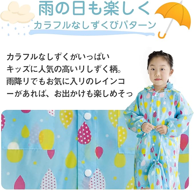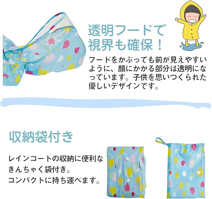 [keledeya] レインコート 子供 ランドセルシート付き キッズ 雨具 リュック対応 男女兼用 収納袋付き 女の子 男の子 完全防水 かわいい おしゃれ 通学通園 収納バッグ付き b