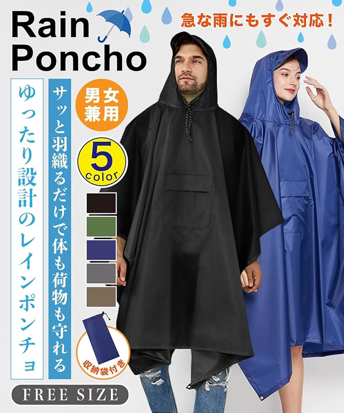 [Pablito] レインポンチョ 多機能 レインコート 自転車 カッパ 3WAY レインウェア アウトドア 雨合羽 通勤 通学 登山 釣り キャンプ 雨具 男女兼用 かっぱ 軽量 防水 タープ レジャーシート 収納袋付き a