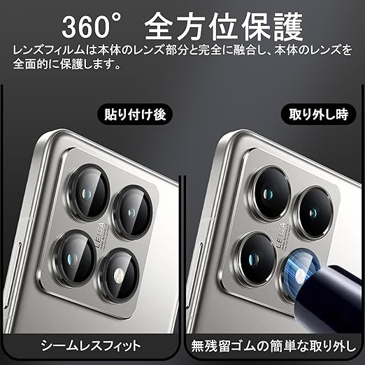 For Xiaomi 14T Pro 用 カメラフィルム 対応 xiaomi 14t pro 専用レンズフィルム 9H硬度 高透過率 耐衝撃 飛散防止 アルミ合金製 露出オーバー防止 防爆裂 アイパッド 用 レンズ 保護フィルム(ブラック) a