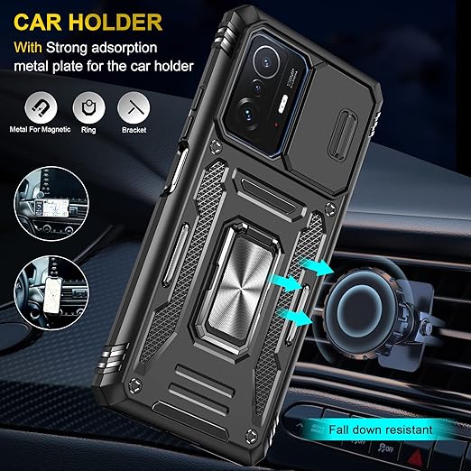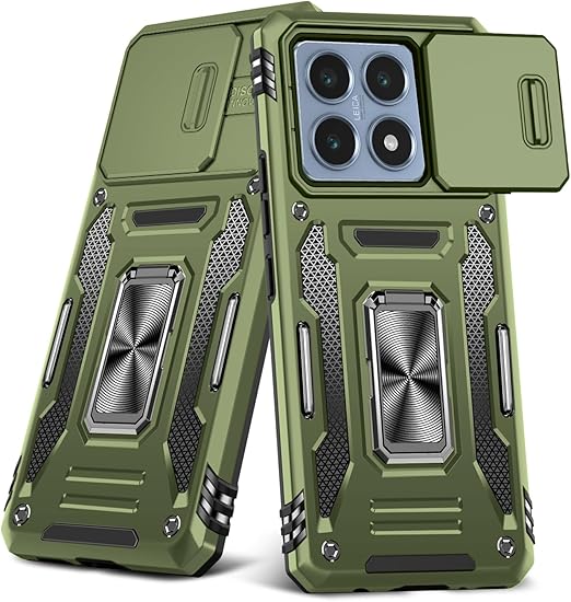 Xiaomi 14t Pro 用ケース リング付き スライド式カメラカバー 耐衝撃 スタンド機能 車載ホルダー レンズ保護 シャオミ 14t Pro 用スマホケース PC TPUバンパー 防塵 人気 落下防止 滑り止め 指紋防止 携帯カバー ダークグリーン K228 a