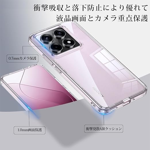 【全透明! 耐衝撃性! 】McDuLL Xiaomi 14T Pro ケース 頑丈PC背面+TPU 2重構造 クリア カバー 傷防止 四隅滑り止め 耐衝撃 薄型 ワイヤレス充電対応 シャオミ 14T プロ カバー (クリスタル・クリア) a