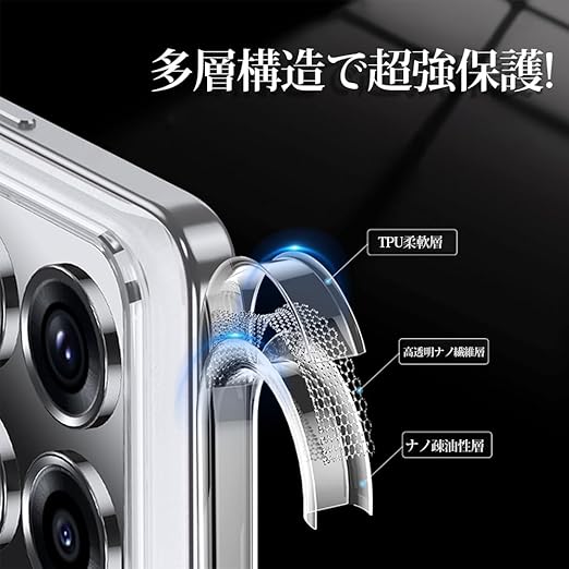 【高品質PC+TPU素材】 柔軟性のあるTPU+PC背面の組み合わせ。フレームはやや柔らかいTPU素材になっているので、スマホを握った時に手に馴染んで滑りにくく、落としてしまうリスクがかなり軽減される。
