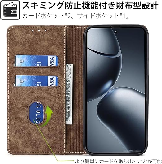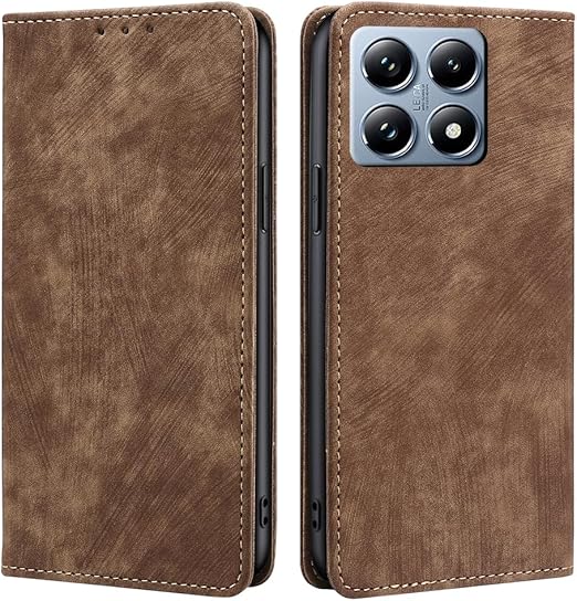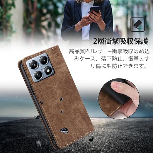 AiMaoo Xiaomi 14T Pro 対応 ケース 防塵 耐衝撃 傷つけ防止 軽量 手作り PUレザー カード収納 RFID磁気防止 マグネット スタンド機能 ケース 手帳型 Xiaomi 14T Pro 用 (ブラウン) a