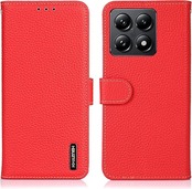 Xiaomi 14T Pro ケース 手帳型 本革 シャオミ 14T プロ カバー 本革 財布型 シュリンクカーフレザー 高級本皮 ライチ柄 良い触り心地 サイドマグネット式 2枚カード収納 横置きスタンド機能 耐衝撃 XJUN レッド a