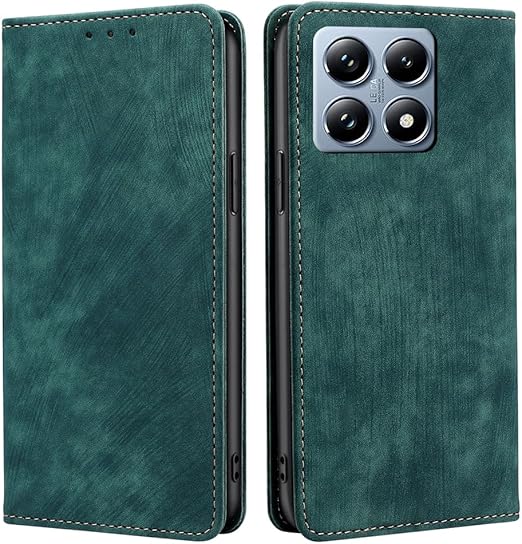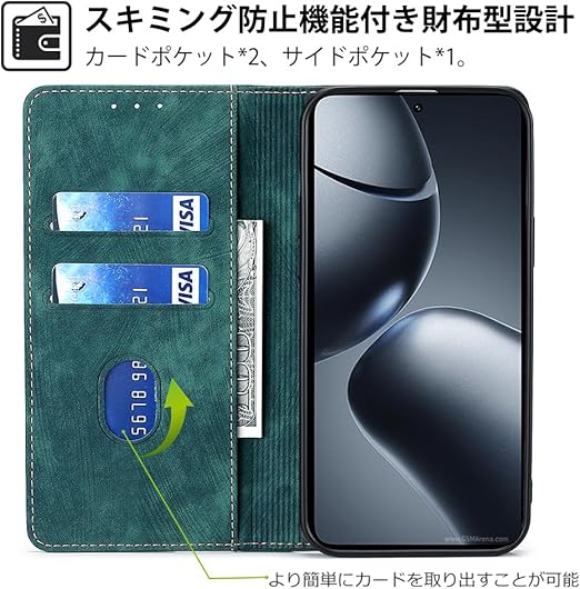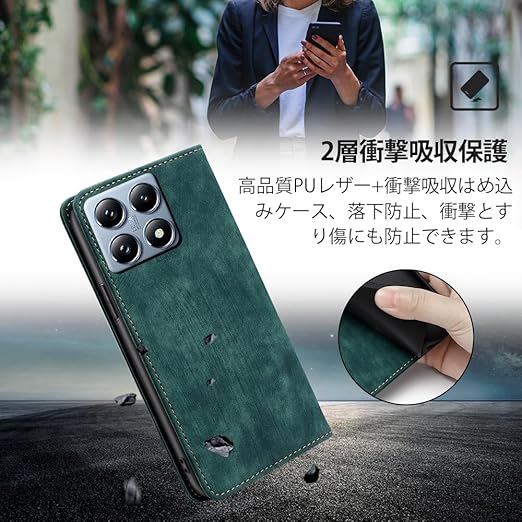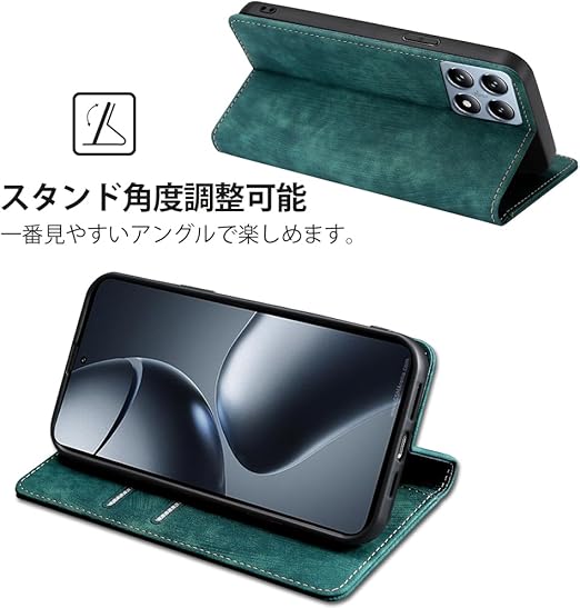 AiMaoo Xiaomi 14T Pro 対応 ケース 防塵 耐衝撃 傷つけ防止 軽量 手作り PUレザー カード収納 RFID磁気防止 マグネット スタンド機能 ケース 手帳型 Xiaomi 14T Pro 用 (グリーン) a