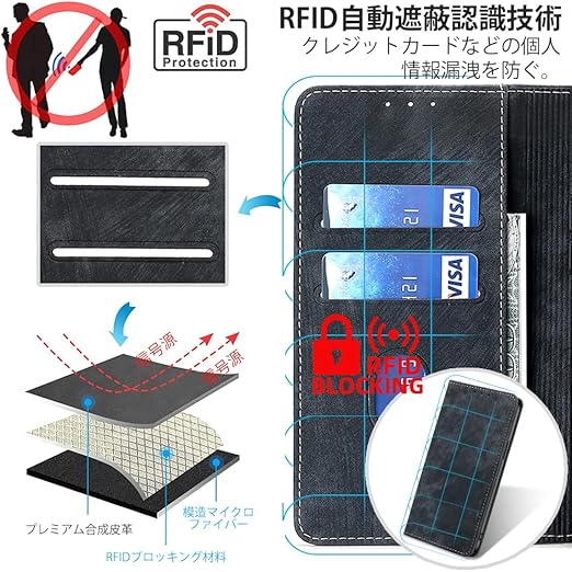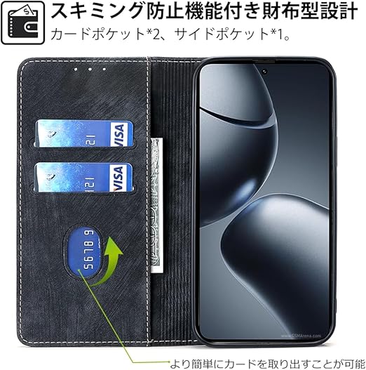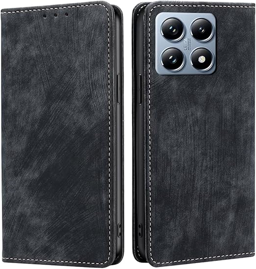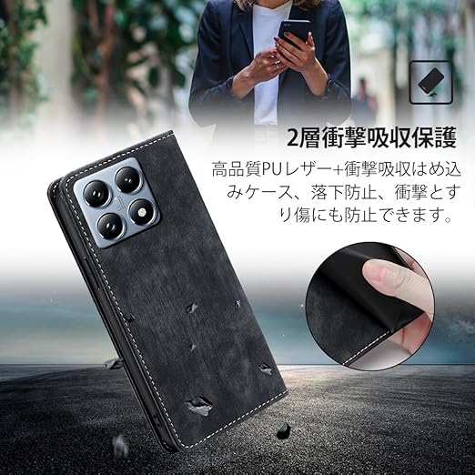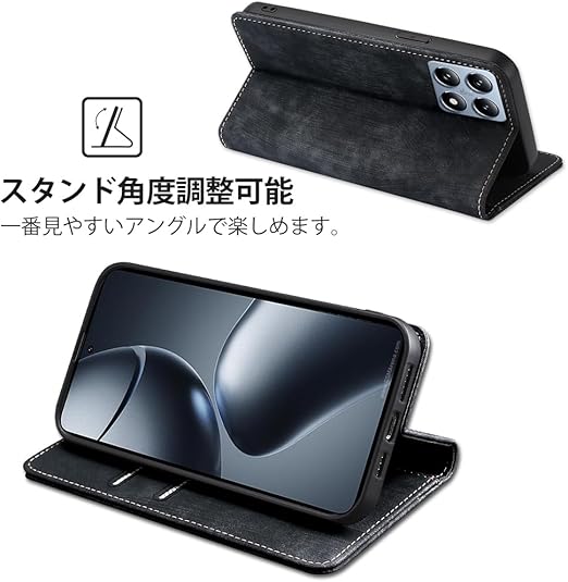 AiMaoo Xiaomi 14T Pro 対応 ケース 防塵 耐衝撃 傷つけ防止 軽量 手作り PUレザー カード収納 RFID磁気防止 マグネット スタンド機能 ケース 手帳型 Xiaomi 14T Pro 用 (ブラック) a