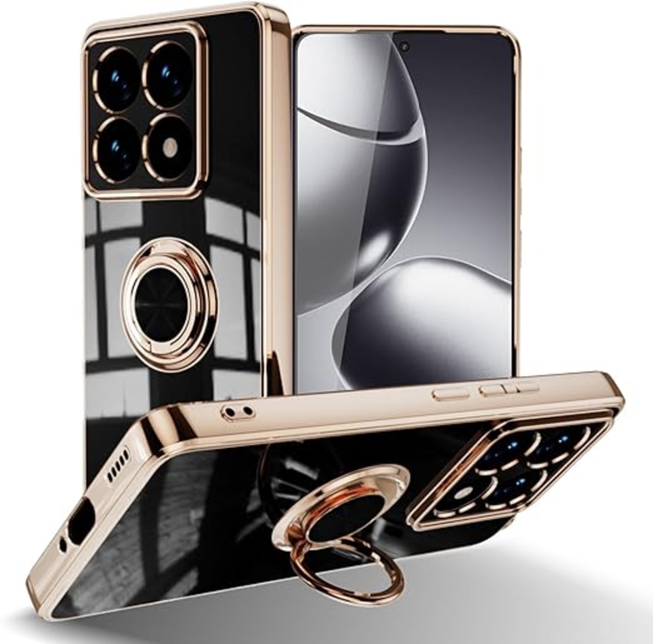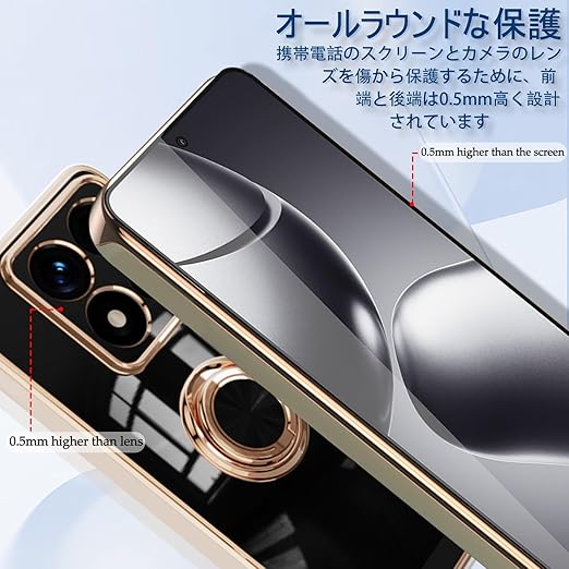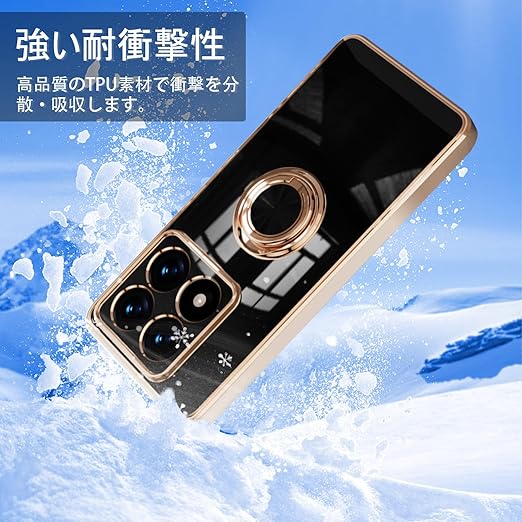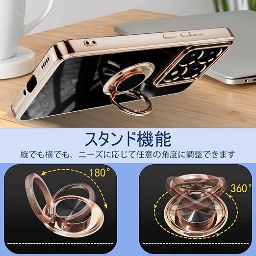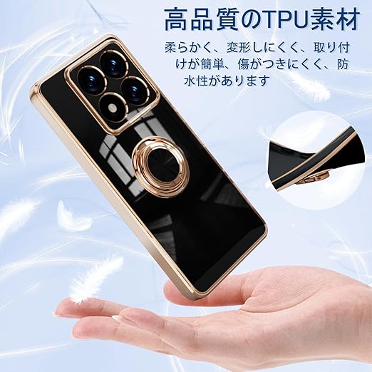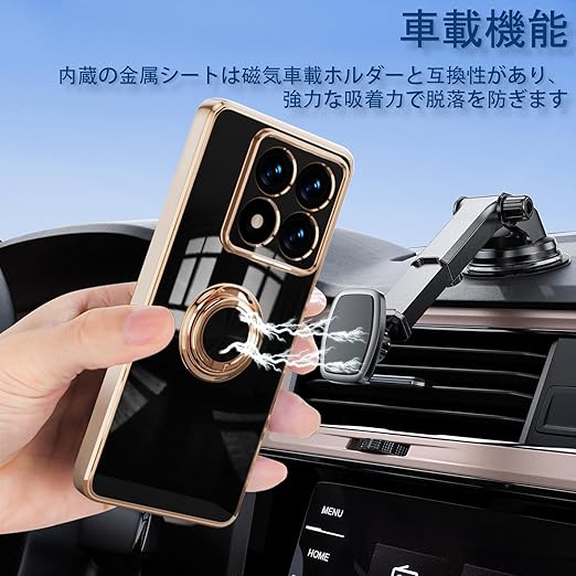 [ZoRoll] Xiaomi 14T Pro 対応 ケース リング付き、カバー スマホケース 14T Pro TPU シリコン メッキ加工カバー 磁気吸着 軽量 薄型 人気 耐衝撃 タンド機能付き 360回転 車載ホルダー対応 シャオミ 14t pro 用 カバー (ブラック) a