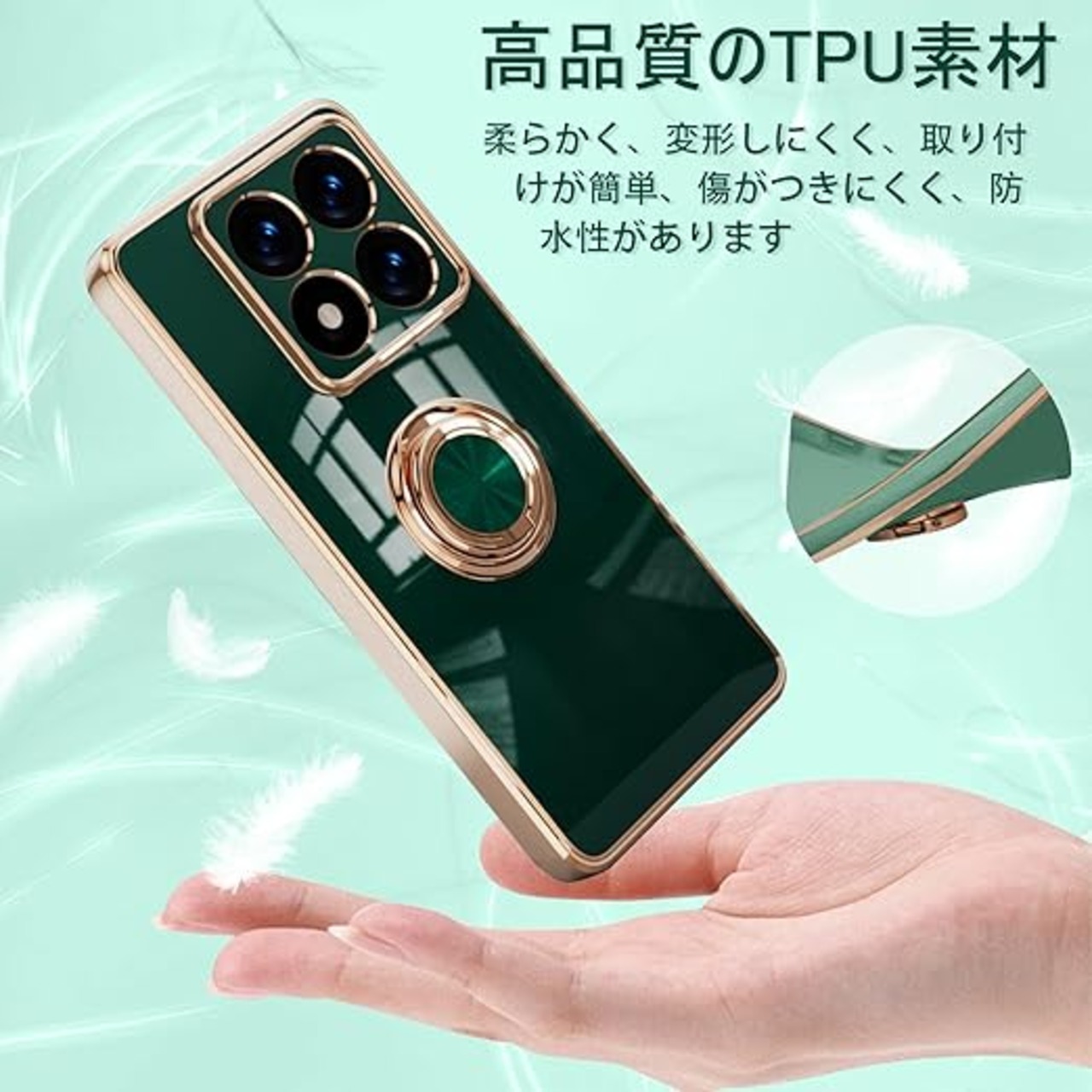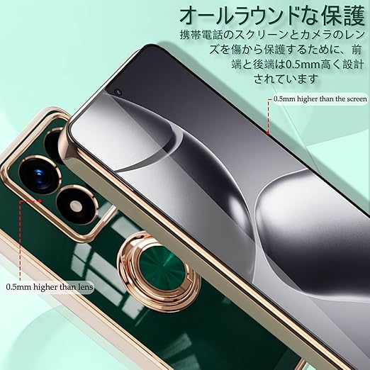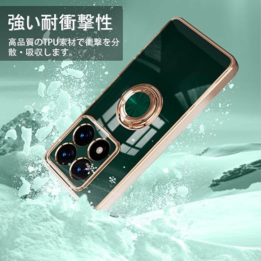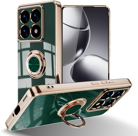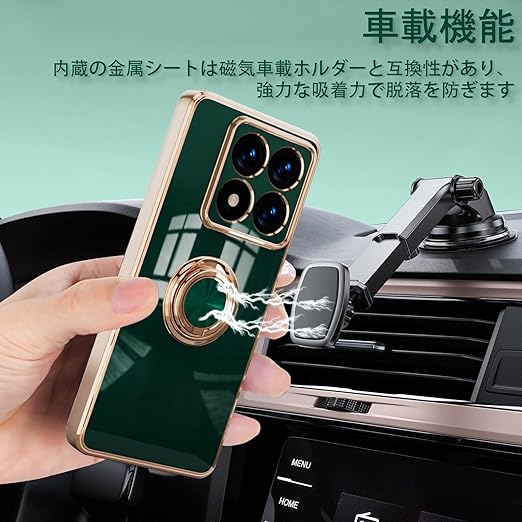 [ZoRoll] Xiaomi 14T Pro 対応 ケース リング付き、カバー スマホケース 14T Pro TPU シリコン メッキ加工カバー 磁気吸着 軽量 薄型 人気 耐衝撃 タンド機能付き 360回転 車載ホルダー対応 シャオミ 14t pro 用 カバー (ダークグリーン) a