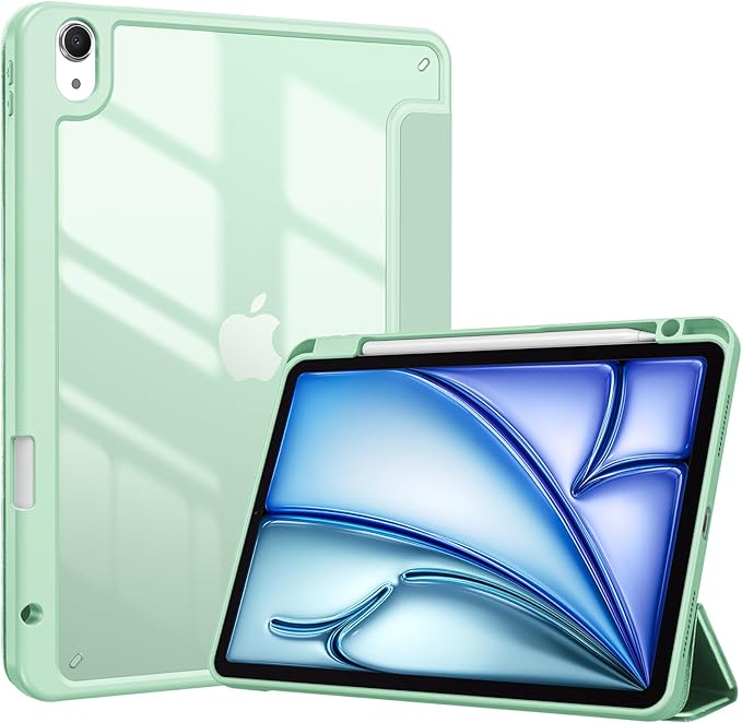 ProCase iPad Air 11インチ ケース M3 (2025) / M2 (2024) / iPad Air5 (2022) / Air4 (2020) 10.9インチ 透明 クリアカバー ペン収納 耐衝撃 三つ折り スタンド スマートカバー (グリーン) a