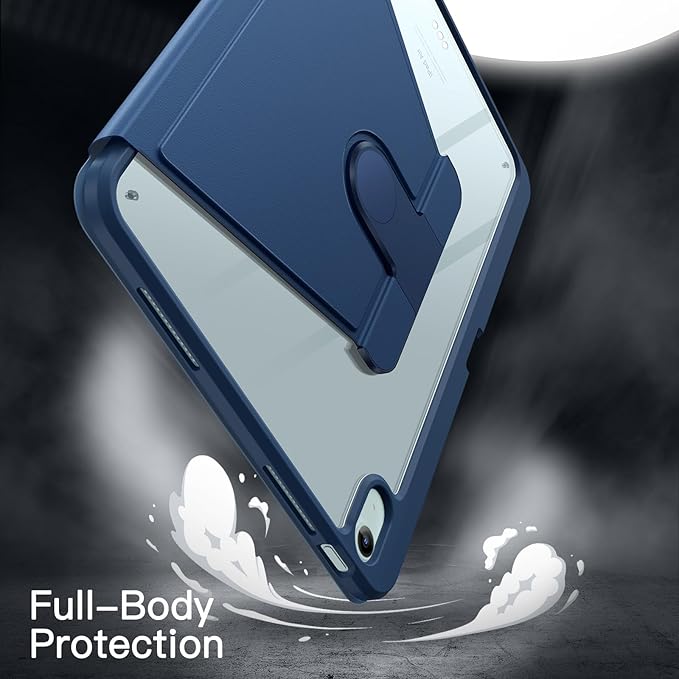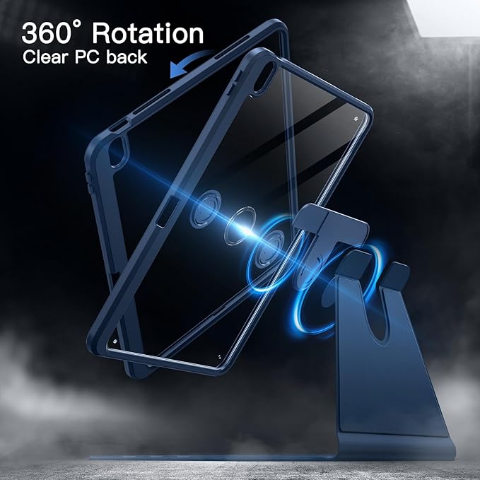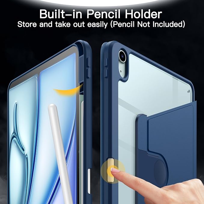 JEDirect 回転ケース iPad Air 13インチ M3/M2(2025/2024)用 Pencilホルダー付き 360°回転保護 スタンドカバー クリアバック オートウェイク/スリープ (ディープネイビー) a