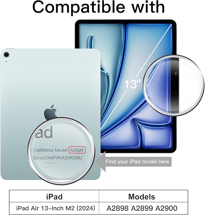 [互換性] Pencil Pro/Pencil(USB-C)に対応。iPad Air 13インチM3/M2(2025/2024)用の特別デザインです。対応iPadモデル番号: A2898 / A2899 / A2900。おデバイスの裏面にあるモデル番号をご確認ください
