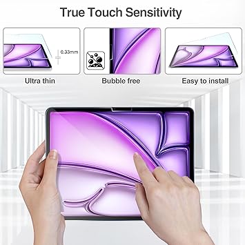 ProCase iPad Air 13インチ フィルム M3 (2025) / M2 (2024) 2枚 レンズ保護 2枚 全面吸着タイプ 耐衝撃 クリア強化ガラス 貼る工具付き b