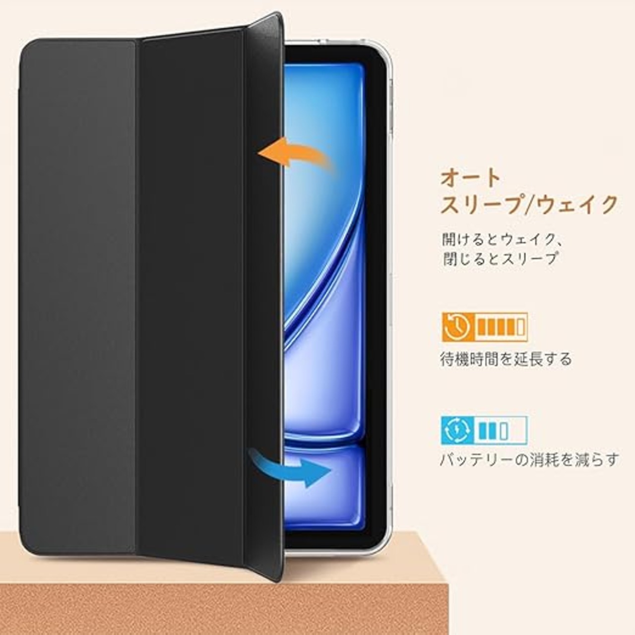 TiMOVO iPad Air 11インチ ケース M3/M2 第7/6世代 (2025/2024) iPad air 第5/4世代 ケース 10.9インチ iPadAir7/6/5/4 カバー 11インチ/10.9インチ TPU オートスリープ機能 全面保護 PUレーザー 三つ折り スタンド 着脱簡単 手帳型 半透明 ブラック a