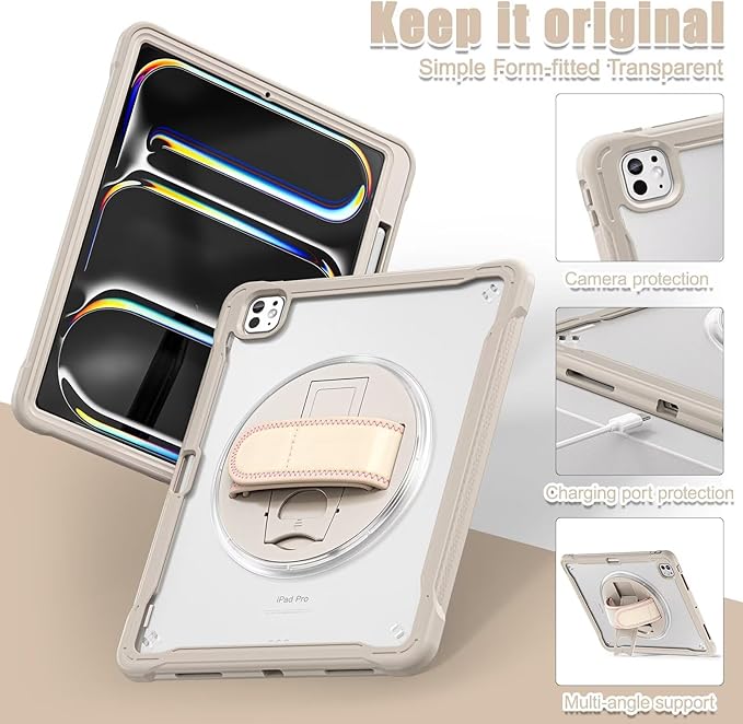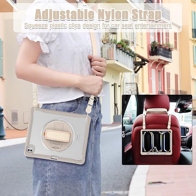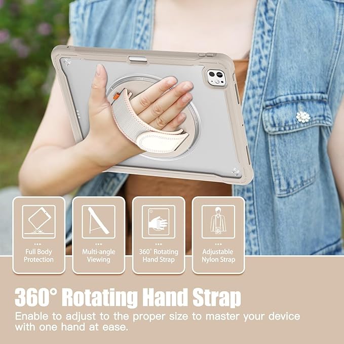 360°回転ベルト iPad Air 11インチM3 M2 ケース iPad Air 11 2025/2024 肩掛け ショルダー ペンシル 収納 iPad Air4 Air5/iPad Pro11 第4/3/2/1世代 ケース 耐衝撃 背面 半透明 カバー 縦置き/横置き スタンド,カーキ a