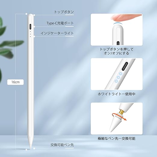 iPad 2018-2024用ペンシル 15分急速充電 Mixoo iPadペンシル タッチペン パームリジェクション/高感度/磁気吸着/傾き感知 iPad Pro 11/12.9インチ、iPad Pro 11/13インチ(M4)、iPad 6/7/8/9/10、iPad Air 3/4/5、iPad Air 11/13インチ(M2)、iPad Mini 5/6に対応 a