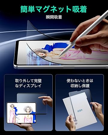 ESR iPad Air 第5世代 フィルム 2022、iPad Air 第4世代 2020、iPad Pro 11インチ(2022/2021/2020/2018)専用 ペーパーライクフィルム 着脱式 マグネットスクリーン保護フィルム 紙のような描き心地保護フィルム 再利用可能 強化フィルムと互換性あり マット仕上げ a