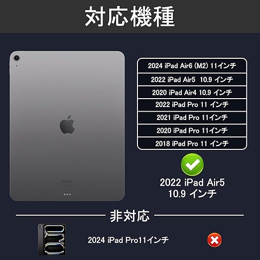 【ipad air 11とipad air5/air4とipad pro 11 第4/3/2/1世代対応】 iPad キーボードケースはipad air 11インチ M2 2024(モデル番号:A2902 / A2903/ A2904)、 iPad Air5 2022 [10.9 インチ](モデル番号:A2588/A2589/A2591 )ipad air4 2020 [10.9 インチ](モデル番号:A2072/A2316/A2324/A2325)、 iPad Pro 11 第4世代 2022