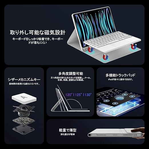 2024年 iPad Air6 キーボード付きケース 11インチ M2 高精度タッチパッド搭載 iPad Air 第5世代 第4世代 キーボード 10.9インチ iPad pro 11インチ 第4/3/2/1世代に対応 マグネット着脱式キーボード 角度調節可能 ペンシルホルダー付き iPad Air 11インチ キーボード ライトグレー a