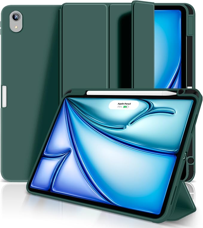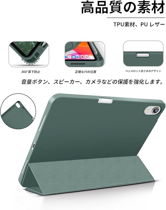 Aoub iPad Air 11 インチ ケース 2024 iPad Air 第5/4世代 カバー 2022/2020年 10.9 インチ Pencil Proペン収納 Apple Pencil2 ワイヤレス充電対応 オートスリープ/ウェイク機能対応 ソフト TPU 薄型 軽量 耐衝撃 三つ折りスタンド(パイングリーン) a