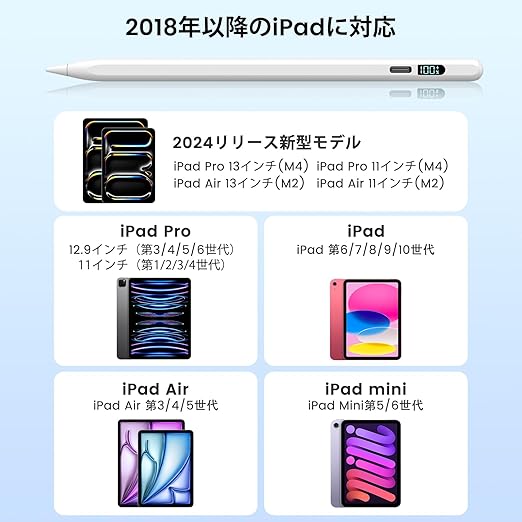 ipad ペンシル Mixoo 【LED電量表示・15分急速充電】iPad タッチペン Apple Pencil互換 アップルペンシル iPad専用スタイラスペン 極細iPadペン 高感度 バッテリー残量表示/Type-C充電/傾き感知/磁気吸着/パームリジェクション/自動スリープ 2018年以降のiPad/iPad Pro/iPad Air/iPad mini対応(iPad mini7非対応) a