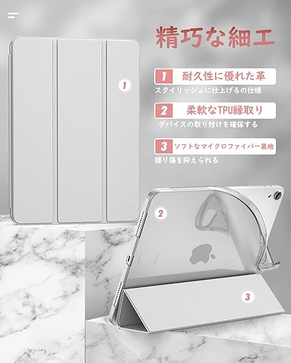 iPad Air 11インチ ケース(2024) Dadanism iPad Air 5 Air 4 カバー iPad Air 11インチ(M2)/第5世代 第4世代 10.9インチ ケース アイパッド エア11インチ オートスリープ PencilPro/第2世代ワイヤレス充電対応 PU+TPU 三つ折り スタンドケース 半透明 ソフト シルバーグレー a