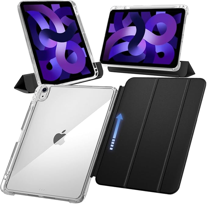 MS factory iPad Air 11インチ ケース 2024 M2 Air 第5/4世代 用 ペン収納 取り外し可能 軽量 耐衝撃 カバー 縦置き/横置きスタンド アイパッドエアー 第6世代 第5世代 第4世代 ソフトフレーム 背面透明 リッチブラック 黒 IPDA4-SLDPEN-BK a