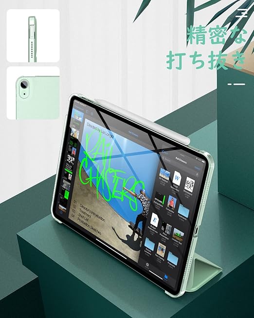iPad air 11インチ(M2) ケース 2024 Dadanism iPad Air 11インチ/Air 5 Air 4 10.9インチ カバー iPad Air 11インチ/第5世代/第4世代 アイパッド エア11インチ オートスリープ 三つ折り スタンドケース PU+PC 半透明 カバー PencilPro/第2世代ワイヤレス充電対応 Green a