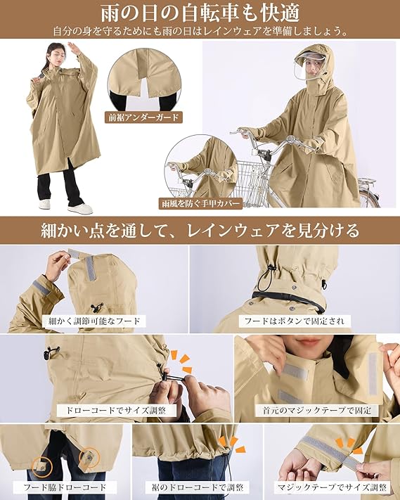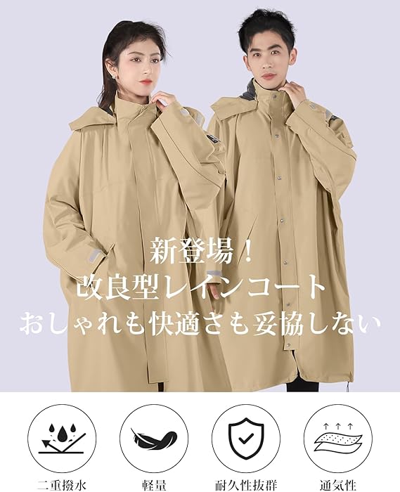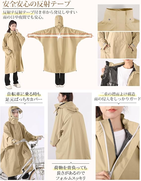 [HINOKAZE] レインコート 自転車 レディースレインウェア メンズカッパ レインポンチョ ロング 大人 バイクカッパ かっぱ ポンチョ リュック対応 おしゃれ 多機能 防風防水 丈夫 通勤通学 男女兼用 反射テープ 収納袋付き a