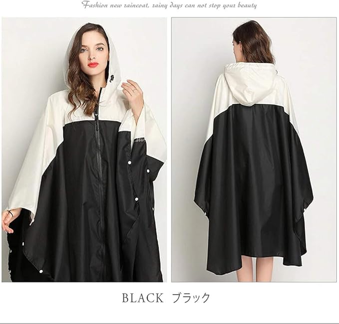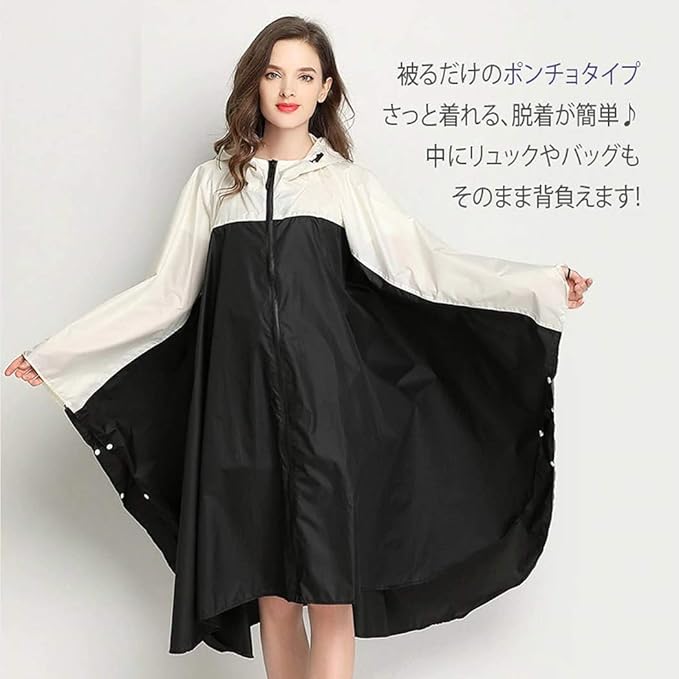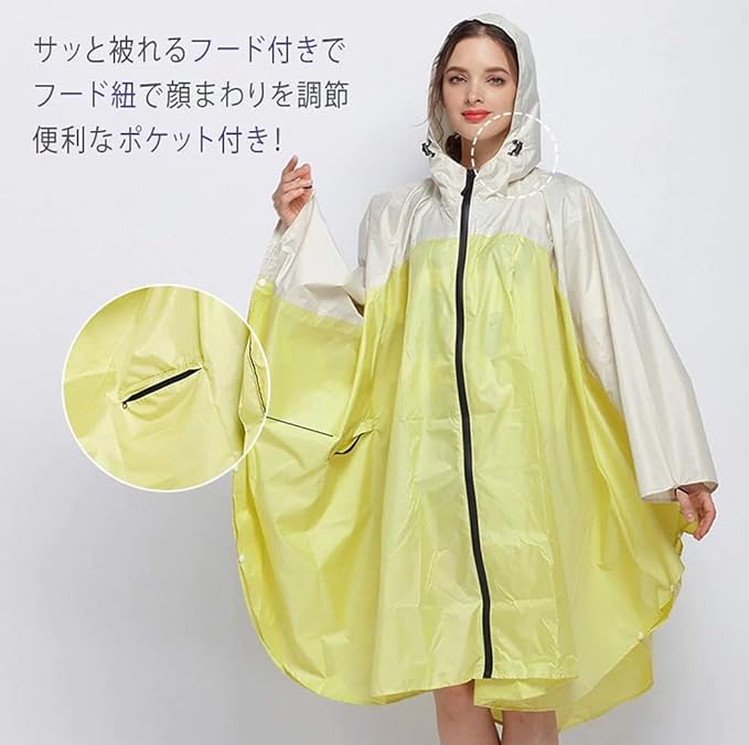 [Moli&Hani] [Amazon限定ブランド] ポンチョ レインコート 配色レディース レインウェア 雨 合羽 大人女子 オシャレ 通勤 ひざ丈 レディス ポンチョ 女の子 大きいサイズ 防水 収納袋付き