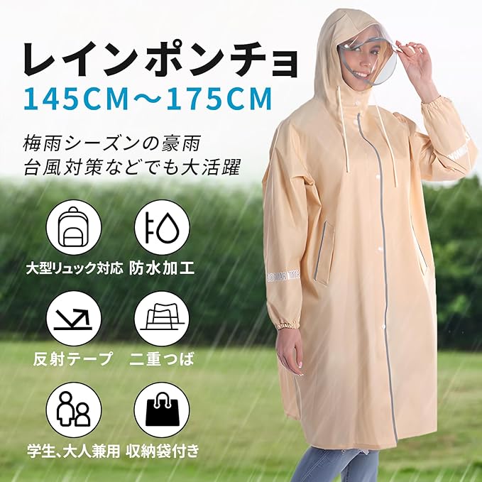 [三和雨] レインコート メンズ レディース 自転車 子供 リュック対応 【防水軽量・二重つば・収納・反射テープ】 レインポンチョ 雨合羽 通学 通勤 梅雨対策 収納袋付 男女兼用 a