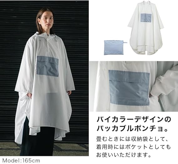 着丈は113㎝と少し長めの作りで雨粒をしっかりカバー。 雨風の強い日や、雨の日の自転車での通勤通学におすすめです。 バイカラーがポイントの男女兼用で使えるユニセックスデザイン。